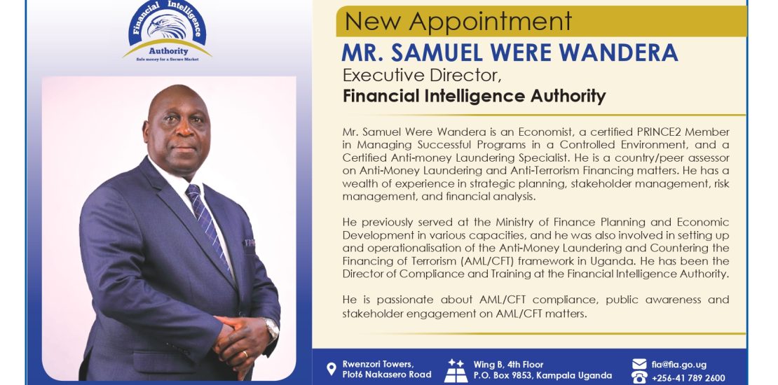NEW APPOINTMENT: Executive Director Financial Intelligence Authority